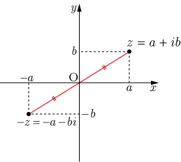 点 z と点 − z は複素平面において原点に関して対称な関係である.