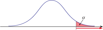 あらかじめ定めた基準として,帰無仮説が正しいにもかかわらず,それを誤って棄却する確率 を小さく定めておく.この基準となる確率 のことを有意水準または危険率という. として,5%,あるいは,1%をよく用いる.観測された結果が帰無仮説のもとでは起こりにくいと判断されるとき,帰無仮説を棄却する.帰無仮説を棄却するような統計量の値の範囲を棄却域という.