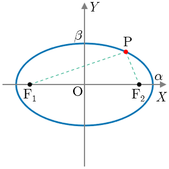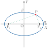楕円(横長:焦点 F1, F2 が X 軸上に存在)