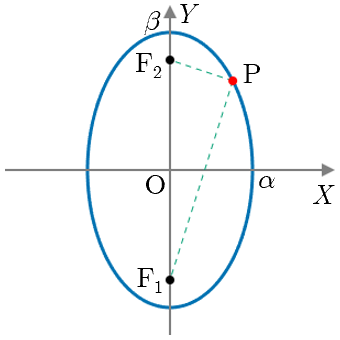 楕円(縦長:焦点 F1, F2 が Y 軸上に存在)