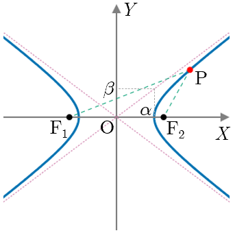 双曲線(横向き:焦点 F1, F2 が X 軸上に存在)