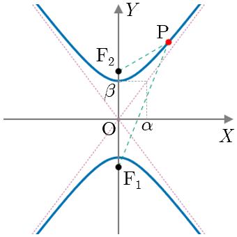 双曲線(縦向き:焦点 F1, F2 が Y 軸上に存在)