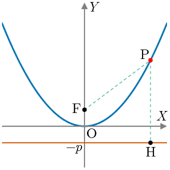 放物線(縦向き:焦点 F が Y 軸上に存在)