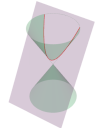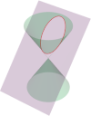 円錐曲線(楕円) 円錐切断面は対の円錐の片方の母線と交わる