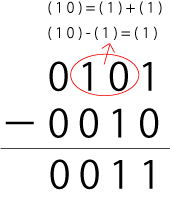 コンピュータでは,負の数を扱えない.そこで補数によって負の数を表現する.