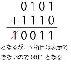 2の補数を,負の数と表現することで加算を足し算で行える.