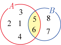 上記の集合の場合, A∩B の要素は,5 ,6であるので