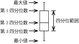 箱ひげ図の構成は以下のようになる.