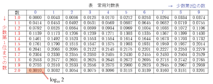 よって,求める値は log 10 2 の値で,常用対数表より0.3010である.