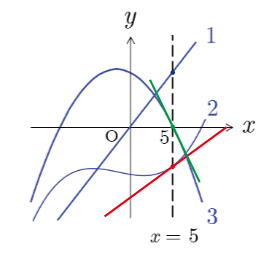 における接線の傾きが負になっているのは,3のグラフである.