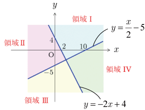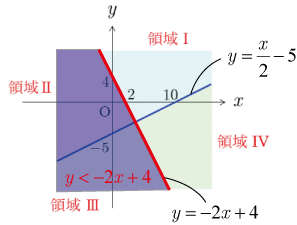 の解は(1)の解(領域I+領域II)と(2)の解(領域II+領域Ⅲ)の重なった部分である.