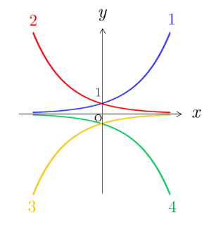 である底が2で1より大きい.よって, が増加するとも増加する増加関数である.グラフは図の1になる.