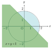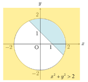 水色の領域を含むのは, x 2 + y 2 <2 と x+y>1 である.