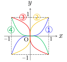 3のグラフは1のグラフをに関して対称移動した後, に関して対称移動したものである.