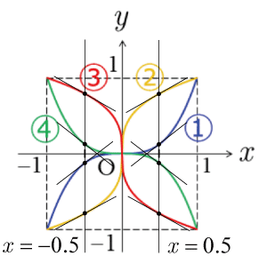 y ″ | x=−0.5 <0 , y ″ | x=0.5 >0 より