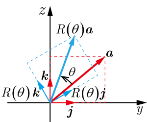 x 成分は変化がないことに注意し,図を参考にすると, R θ i , R θ j , R θ k は以下のようになる.