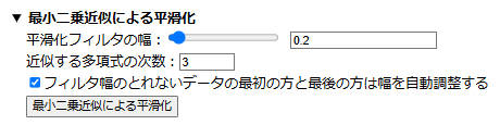 本アプリでは,データの平滑化(ノイズ除去)の方法として,フーリエ変換による方法と最小二乗近似による方法を用意している.