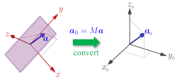 $$ \tag{6} \boldsymbol{a}_0=M\boldsymbol{a} $$に変換できるというわけである.