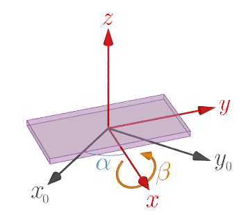 $$ \tag{5} M=R_z(\alpha)R_x(\beta)R_y(\gamma) $$を用いて,静止座標系での加速度