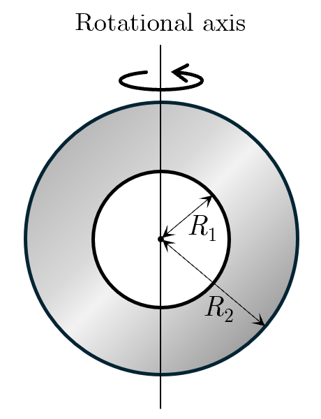 である.図に示すように,平面の極座標を用いて,この円環を半径方向(