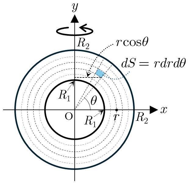 と求まる.もし,円環の幅が無視できるほど小さければ(