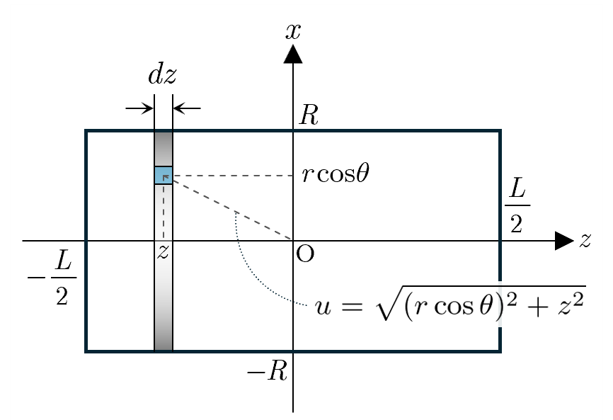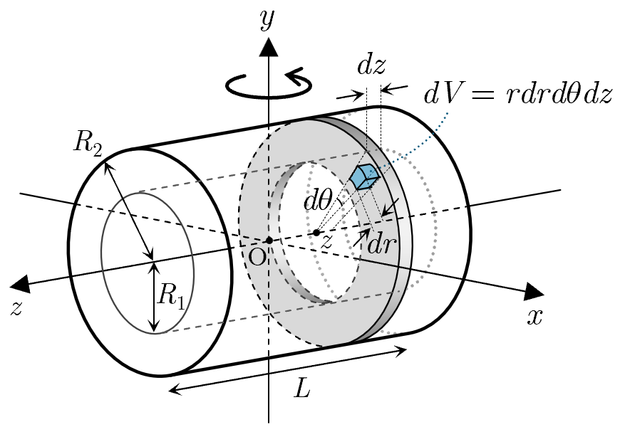 でスライスし,多数の薄い円環に分割する.さらに,円柱座標を考えて,