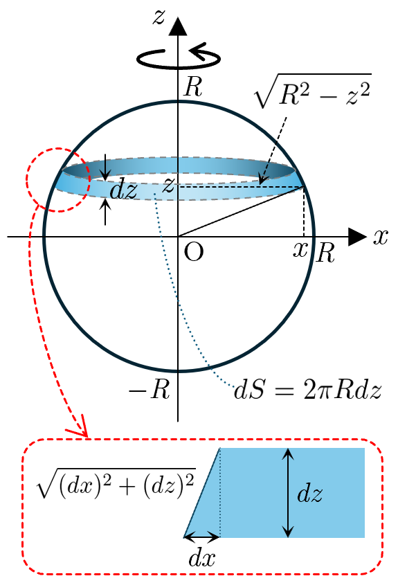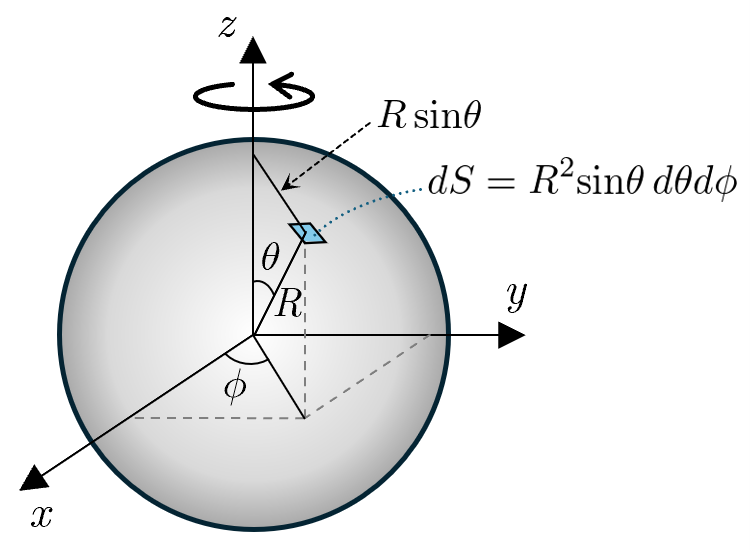 図に示すように,球殻を多数の微小面積に分割し,極座標