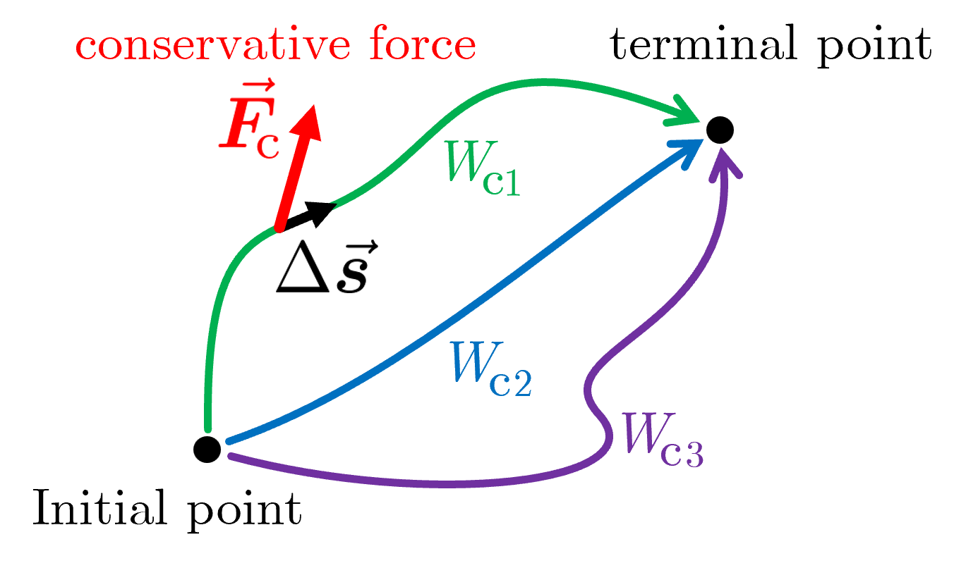 物体に力を加えて移動させるとき,その力のする仕事が物体のたどる経路に関係なく,どの経路をたどっても同じ場合(つまり,経路の始点 (initial point) と終点 (terminal point) の位置のみで仕事が決まる場合),その力を保存力 (conservative force) という.位置エネルギーは保存力のする仕事により定義される(下記参照).