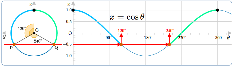 0 ° ≦ θ < 360 ° のとき,次の不等式を解きなさい.
