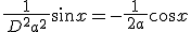 ホーム>>カテゴリー分類>>微分>>微分方程式>>逆演算子の公式>>逆演算子の公式の導出 {1/(D^2+a^2)}sinax その2