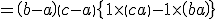1列目の1行目の成分以外を0にするため,行列式の計算則を利用し,2行+1行×(-1),3行+1行×(-1)の計算を行う.