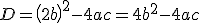 を判別式といい.この D の値で2次方程式の解の個数を判定する.