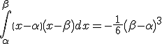 放物線 と軸がなす2つの交点(解)が でかつ,積分範囲が の場合に利用する.(2次関数(放物線)と2次方程式については,関数を参照.)