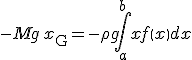 軸と重力の方向に垂直な回転軸の回りに関して「重力による力のモーメント」=「各々の力のモーメントの和(連続体の場合は積分)」が成り立たつ.力のモーメントの正方向が反時計回りの方向であることを考慮すると