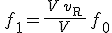 は,壁を観測者と考えたときに壁が受け取る音の振動数であるので次式となる.