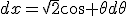 ・・・・・・(2)とおき置換積分をする,両辺を微分すると