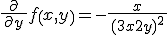 偏導関数の定義より, を定数とみなして で微分する. 分数関数の微分の公式を用いる.