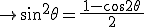 の2乗がでてくるときは,2倍角の公式を使って次数を下げた式にして計算すると解きやすい.