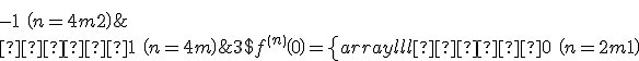 %20%20}%5cleft({0}%5cright)=%5cleft{{%5cbegin{array}{lll}%5ctext{ }%5ctext{ }0%5ctext{%5chspace{5}}%5cleft({%20n=2m+1%20%20}%5cright)&%20%5cvspace{6}%5c%5c%20%5ctext{ }%5ctext{ }1%5ctext{%5chspace{5}}%5cleft({%20n=4m%20%20}%5cright)&%20%5cvspace{6}%5c%5c%20-%201%5ctext{%5chspace{5}}%5cleft({%20n=4m+2%20%20}%5cright)&%20%5cvspace{6}%5c%5c%20%20%5cend{array}%20%20})