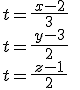 となり,媒介変数を用いない場合の直線の方程式が得られる.